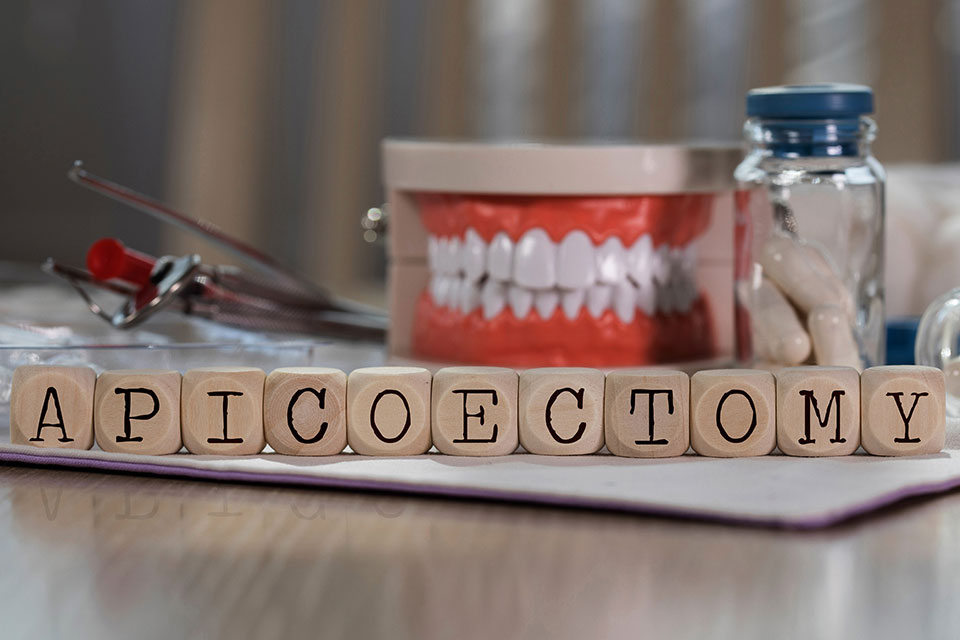 An apicoectomy is the most common endodontic surgery (aka root-end resection). After a root canal, sometimes infection or decay continues to be a problem. We can address this problem with an apicoectomy. In some cases rather than a single uniform chamber, your tooth may have many tiny branches that can harbor infection. Apicoectomy surgery removes just the very the tip (apex) of the root, where many infections originate. New technology and techniques to detect these hidden infections have advanced, so a follow-up root canal can often solve the problem, but sometimes root end surgery is necessary.